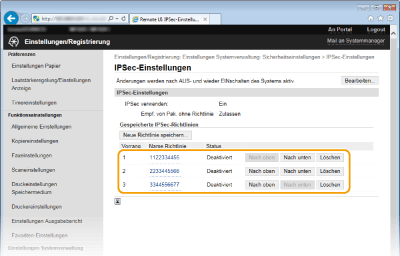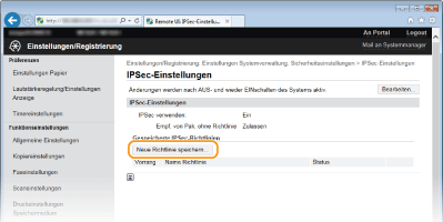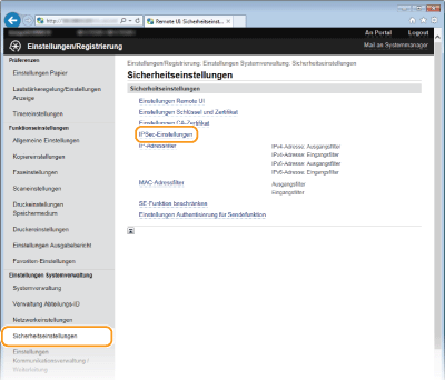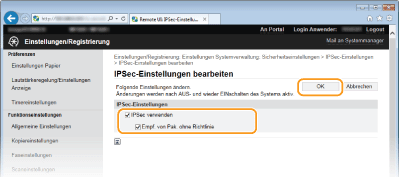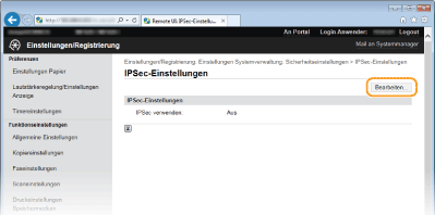Sie können die IPSec-Kommunikation über <Menü> aktivieren oder deaktivieren. IPSec verwenden