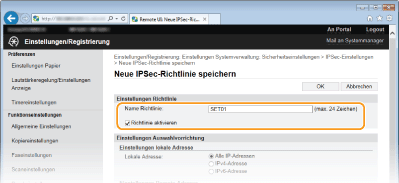 Aktivieren Sie das Kontrollkästchen [Richtlinie aktivieren].