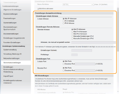 Wählen Sie diese Einstellung, wenn IPSec für alle an die und von der IPv6-Adresse des Geräts gesendeten IP-Pakete verwendet werden soll.