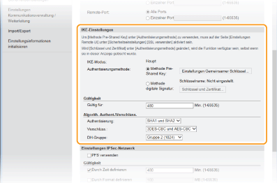 Legen Sie die Einstellungen für [Gültig für] und [Authentisierung]/[Verschlüsselung]/[DH-Gruppe] fest.