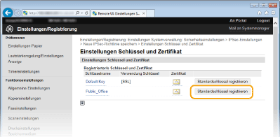 Klicken Sie rechts neben einem zu verwendenden Schlüsselpaar auf [Standardschlüssel registrieren].