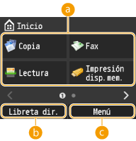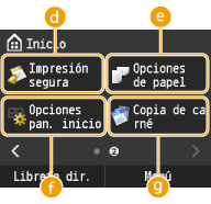 en el panel de control. Los botones para acceder a las funciones se muestran en la pantalla de inicio. Puede agregar/eliminar botones de la pantalla de inicio y reorganizarlos para que su uso resulte más fácil.