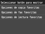 Si se eliminan o se cambia el nombre de las opciones utilizadas con mayor frecuencia desde la IU remota, al pulsar el botón que queda en la pantalla de inicio no se mostrarán las opciones. Cancele la visualización del botón en la pantalla de inicio y, a continuación, vuelva a registrarlo con un nombre nuevo si es necesario.