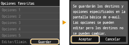 <Sí>. Si en el paso 2 seleccionó opciones que ya estaban registradas, se mostrará una pantalla de confirmación para sobreescribir las opciones anteriores.