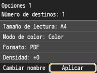 Las opciones utilizadas con mayor frecuencia para <Lectura> solo pueden registrarse para el e-mail, las carpetas compartidas y los servidores de archivos. Agregar botones desde <Opciones pan. inicio>