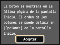 Si la pantalla de inicio está llena y no se pueden registrar más opciones, elimine espacios con <Opciones pan. inicio> en la pantalla de inicio o elimine los botones registrados. Eliminar botones