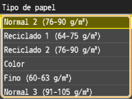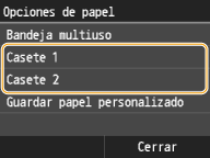 Para el papel que no se reconozca automáticamente, como el LGL o EXEC, especifique el papel con <Lista 1 de tamaños de papel para reconocimiento> o <Lista 2 de tamaños de papel para reconocimiento> de antemano.