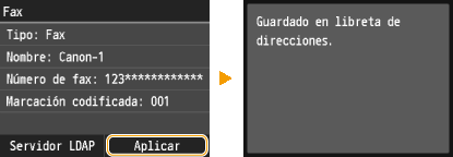 Introduzca el número o la dirección utilizando las teclas numéricas y pulse <Aplicar>.