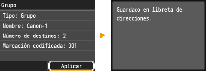 Repita los pasos 9 y 10 hasta que haya registrado todos los destinos que desee registrar y, a continuación, pulse <Aplicar>.