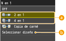, pero es posible que los lados del documento no se copien si la aumenta.<2 en 1>/<4 en 1> no está disponible cuando se utiliza <Borrar marco> y <Copia de carné>.