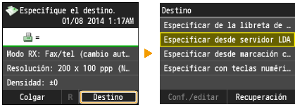 Si su oficina cuenta con un servidor LDAP, puede utilizar los destinos registrados en el servidor. Para especificar destinos, acceda a un servidor LDAP a través del equipo y, a continuación, busque un destino.