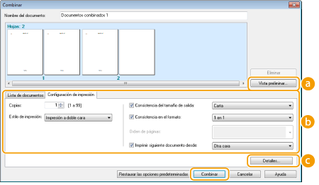 Cambie las opciones según sus necesidades y haga clic en [Combinar].