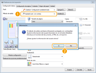 Seleccione [Impresión prot. con contras.] en [Método de salida].