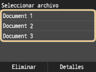 Si se conservan en la memoria documentos protegidos de dos o más usuarios, aparecerá la pantalla <Seleccione usuario> antes que la pantalla <Seleccionar archivo>. Pulse su nombre de usuario.