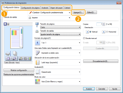 Cambie las opciones que desee registrar como perfil y haga clic en [Agregar].