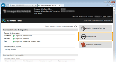 En función de su navegador web, es posible que el procedimiento para iniciar la IU remota sea distinto. Consulte los manuales de instrucciones del navegador web que esté utilizando.