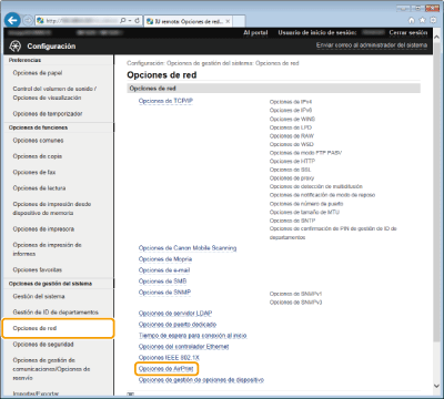 Si se habilita AirPrint seleccionando la casilla de verificación [Usar AirPrint], también se habilitan las opciones <Usar HTTP> y <Opciones de mDNS> (IPv4).
