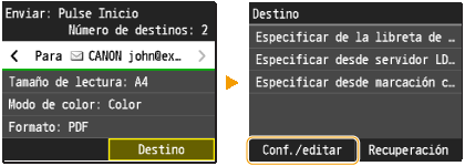 Si desea eliminar destinos de una forma rápida y sencilla sin mostrar una lista de destinosAntes de pulsar <Conf./editar> en el paso 1, puede pulsar
