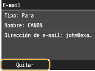 / para alternar los destinos especificados. Muestre el destino que desee eliminar y pulse . |