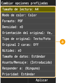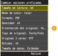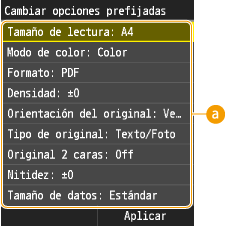 Seleccione el elemento que desee configurar y cambie el valor predeterminado.