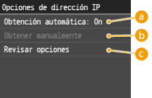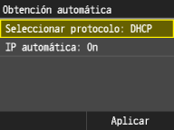 establezca tanto <Seleccionar protocolo> como <IP automática> en <Off>. |