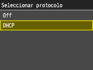 ![]() ![]() Si no desea utilizar DHCP para asignar una dirección IP Seleccione <Off>. Si selecciona <DHCP> cuando este servicio no está disponible, el equipo desperdiciará tiempo y recursos de comunicación buscando la red de este servicio. |