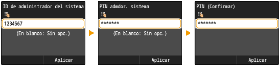 Introduzca hasta 32 caracteres en el nombre del administrador del sistema, y pulse <Aplicar>. Introducción de texto