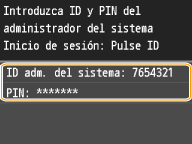 Configuración de las opciones a través de la IU remotaIntroduzca el ID del administrador del sistema y el PIN en [Modo de administrador del sistema] en la IU remota e inicie sesión. Haga clic en [Configuración]