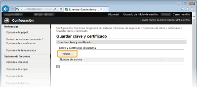 Los pares de claves y los certificados digitales pueden obtenerse con la ayuda de una entidad de certificación (CA) y utilizarse con el equipo. Puede guardar y registrar estos archivos utilizando la IU remota. Asegúrese de que el par de claves y el certificado cumplan los requisitos del equipo (