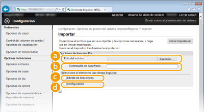 Los datos de la libreta de direcciones especificados se importarán en el equipo.