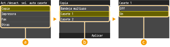 ). La selección de casete de forma automática siempre está habilitada para la impresión en papel introducido desde la bandeja multiuso.