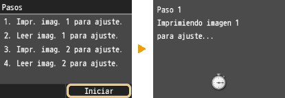 La imagen de ajuste se lee y se inicia el ajuste. En aproximadamente 10 segundos, se imprimirá la segunda imagen de ajuste.