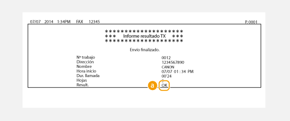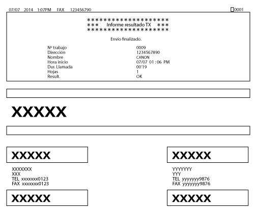 <Informe resultado TX de fax> o <Informe resultado TX de archivo/e-mail>