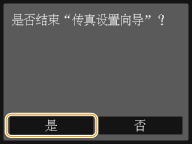 如果之前在传真设置画面( 注册传真号码和单位名称)中选择了 <稍后设置>,请轻触 <菜单>  <传真设置>  <传真设置向导> 显示传真设置画面。 |