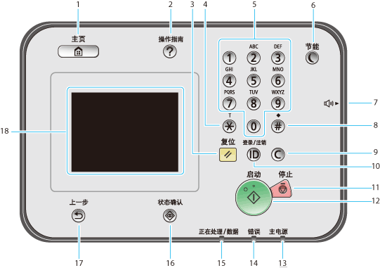 可以查看复印、传真和其他作业及错误状态的进度。显示屏是触控面板,可让您通过触控指定设置来操作画面。