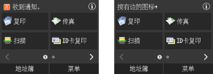 ![]() 显示 <收到通知。> 或 <按右边的图标->> 时 |