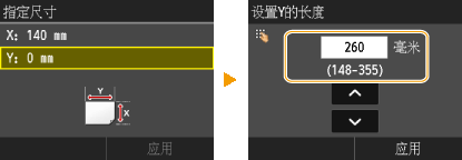 2 | 指定 <Y>(长边)侧的长度。 轻触 <Y>。 输入 <Y> 边的长度并轻触 <应用>。 |