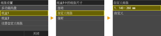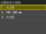 在指定纸盒中所装入纸张的纸张尺寸画面上,将显示已注册的纸张尺寸。