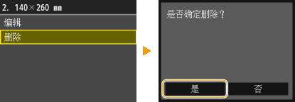 如果已经注册了纸张尺寸 <1> 至 <3>,请改变或删除设置以继续操作。改变和删除这些设置的步骤如下。