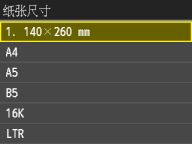 画面上会显示在以上步骤中注册的纸张尺寸,用于选择纸张尺寸。