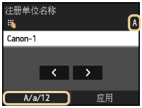 输入的文本类型为 <A> 或 <a> 时,按 以在画面上显示可输入的符号。轻触符号以输入。也可以按 切换文本类型。 |