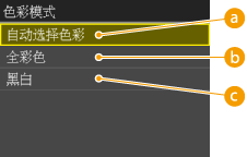 ![]() | 本机具有 <自动选择色彩> 模式,它能识别原稿为彩色原稿还是黑白原稿,然后自动在全彩模式和黑色模式之间切换。必要时,还可以随时在 <全彩色> 和 <黑白> 模式之间手动切换。 |
