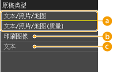 适合复印同时包含文本和照片的文档或者地图等含有大量线条的文档。使用该文档类型,还可以选择优先考虑图像质量的模式。