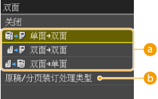 <双面> 对于某些纸张尺寸和类型可能无法使用。 <双面> 在使用 <ID卡复印> 时无法使用。 |