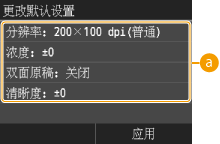 时所显示的设置即为默认设置。如果更改这些默认设置以符合您频繁执行的操作,可以省去每次发送传真时进行相同设置的麻烦。