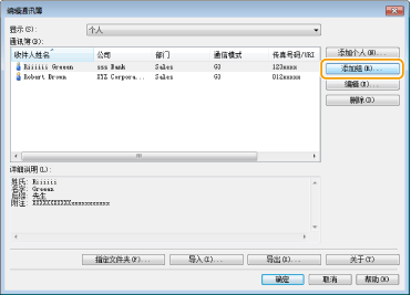 单击 [编辑通讯簿] 对话框中的 [添加个人]。