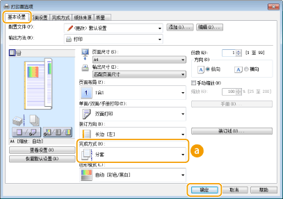 在 [完成方式] 中选择 [分套] 或 [分组]