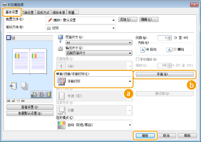 在 [单面/双面/手册打印] 中选择 [手册打印]