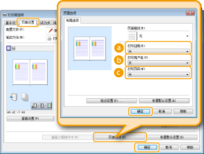 打印日期、登录名或页码时,可以改变字体和字号等详细格式信息。在上面的页面选项画面上单击 [格式设置] 可指定详细信息。
