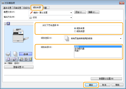 从 [纸张来源] 中选择装有要打印纸张的供纸器